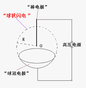 我們認為:“棒電極”在球心O對“球冠電極”放電,可以產(chǎn)生“球狀閃電”。 [3][4]