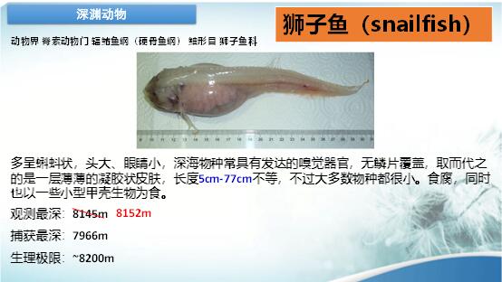 在2016年的考察中,首先對不同深度的海水波速進行測量,其次是用攝像機在海底拍攝,收集深海的動物和植物的情況,再次就是收集活的動物。我們收集到在8000米以下生活的獅子魚和鉤蝦。可以說,我國對深海的生物研究有發(fā)言權了。