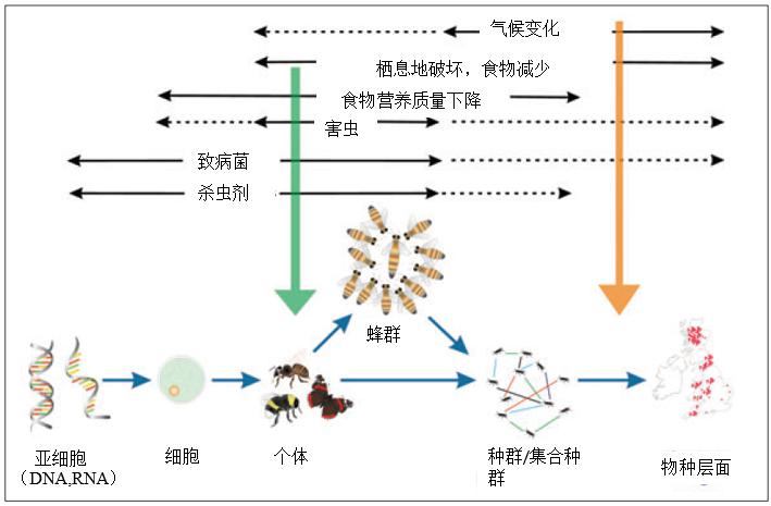 圖3 各種環(huán)境因素對(duì)傳粉昆蟲的各個(gè)層面的影響